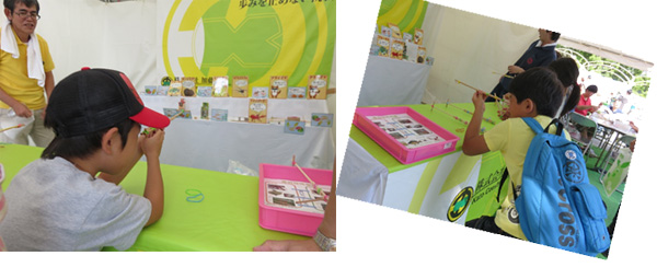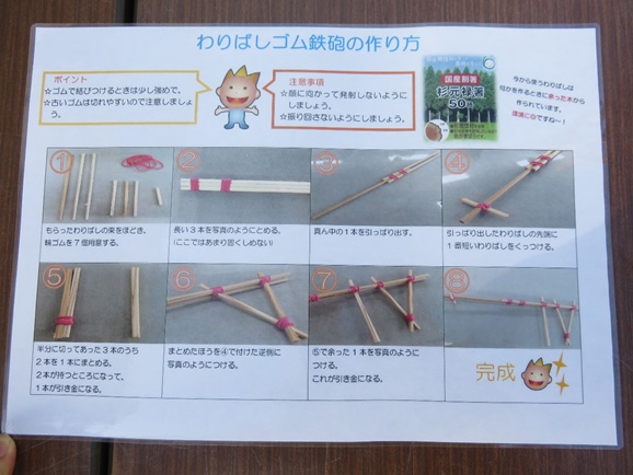 間伐材の割り箸を使った割り箸鉄砲を作って、外来種のパネルをやっつける射的の企画です。