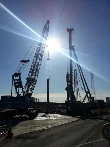 こちらの現場では基礎杭を施工中。重機がでかくてカッコいいです。