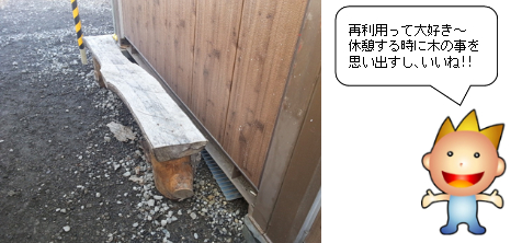 こちらの現場では、伐採木の有効利用として、休憩所のベンチを制作していました。