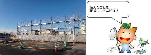 “周辺の自然環境にも配慮しなくちゃね”と、現場のビオトープ管理士がチェックしてます。