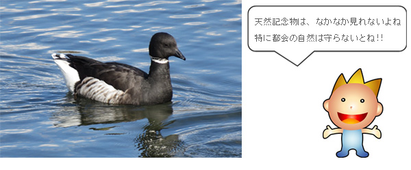“あそこに白い首輪のある鳥が一羽いるでしょ、あれがコクガンだよ”