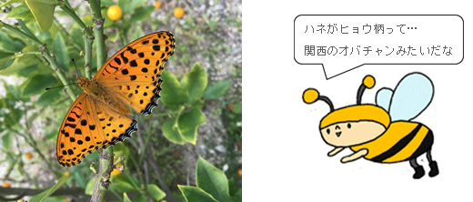金柑の木にツマグロヒョウモンがとまってました!! ヒョウモン(豹紋)というだけあって、ヒョウ柄なんですね。