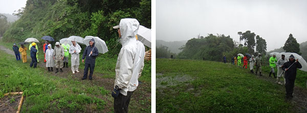 まずは現地の説明をしていただきましたが、雨音が激しすぎて説明がなかなか聞こえません~