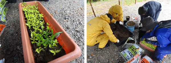 今回は、プランターで芽吹いた“マユミ”という樹木をポットに植え替えです。