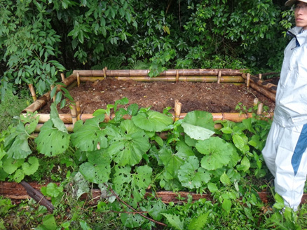 こちらは現地で発生した草木を活用して作っている腐葉土。