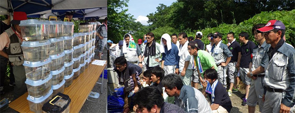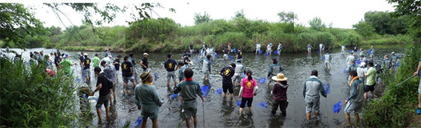 そこにすむ生き物を手で触れ、体感することで自然の大切さ、生き物のつながりを