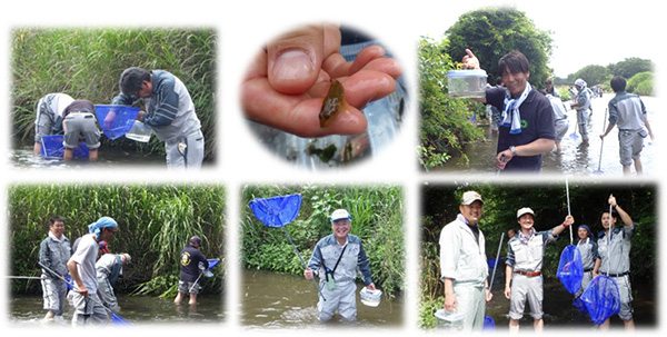 すると社長から “100人突破を記念してビオトープにちなんだイベントを考えてみてね” ということで、色々と調べて企画を練り ようやく7月、100人突破イベントを開催したのです。 そのイベントの内容は、ザックリいうと “みんなで川に入って生き物を探してみよ~ぅ!!” です。 えっ?川に入って生き物を探す? って、思いましたよね。 |