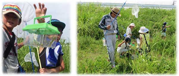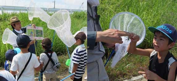 子どもたちはタモ網を持って準備OKな状態です。