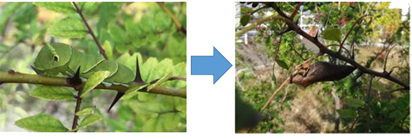 アゲハチョウの幼虫が…10月の終わりにはサナギになってましたよ。