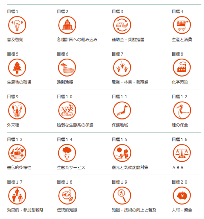 ということで20項目の行動目標が決まり、愛知目標(愛知ターゲット)と名づけられました。
