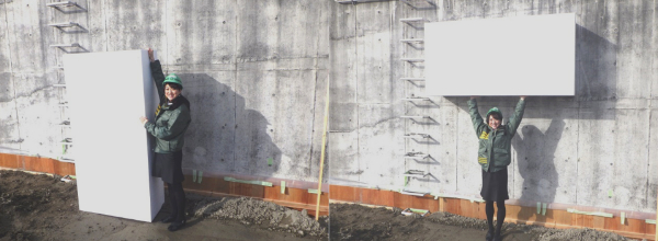 こちらが盛土材料のEPS(発泡スチロール)のブロック。女の子でも持ち上げられるぐらい軽いんです。