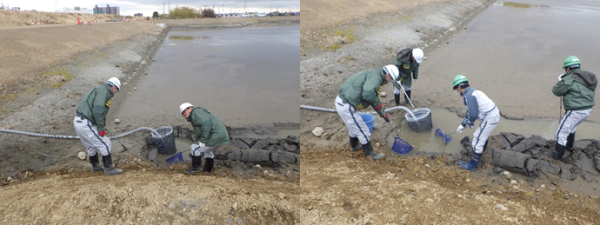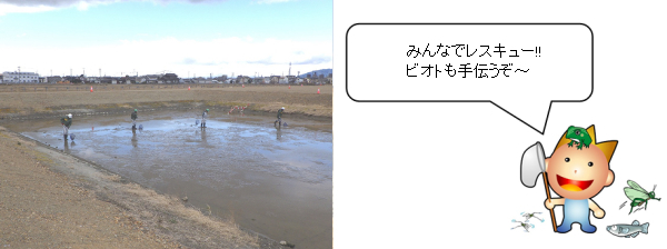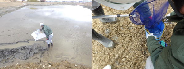 愛西市 造成工事調整池の生き物保護活動