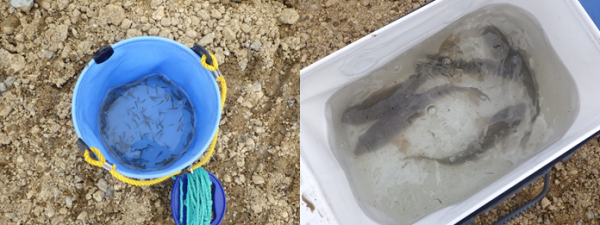 その他にも水溜りに取り残された生き物を、人海戦術で捕獲。