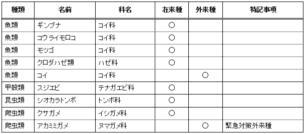 魚類 5種(在来種4種、外来種1種)