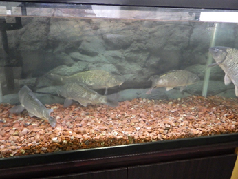 細長い水槽なので魚を横からチェックするには最適なんですよ。