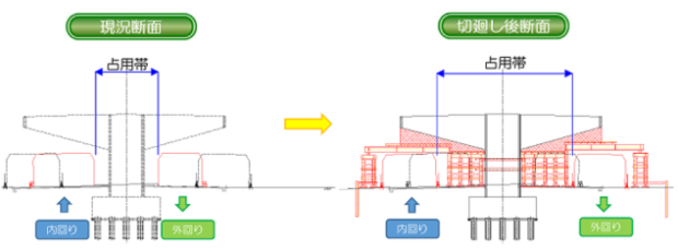 上部の構造が大きいので仮設が道をまたぐそうです。