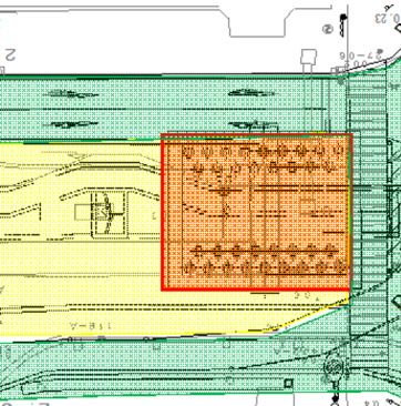 大きな交差点でとっても大きな橋脚のフーチング(基礎底盤)のみを作ります。