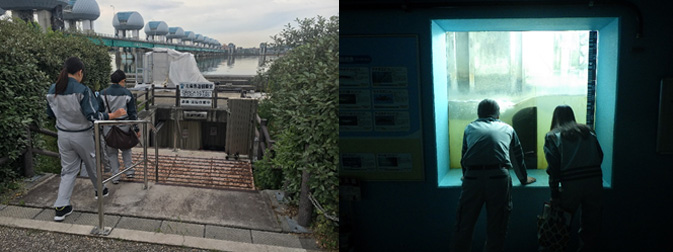 現場を確認した後にすぐ近くのアクアプラザながらへ行ってお勉強!!