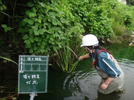 水辺の植物なので、さっそく胴長を装着し、調査開始!!