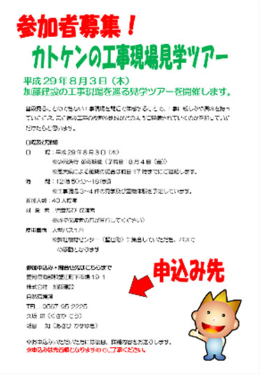 さて、私たち加藤建設も、皆さんに土木の仕事を見てもらいたい!!