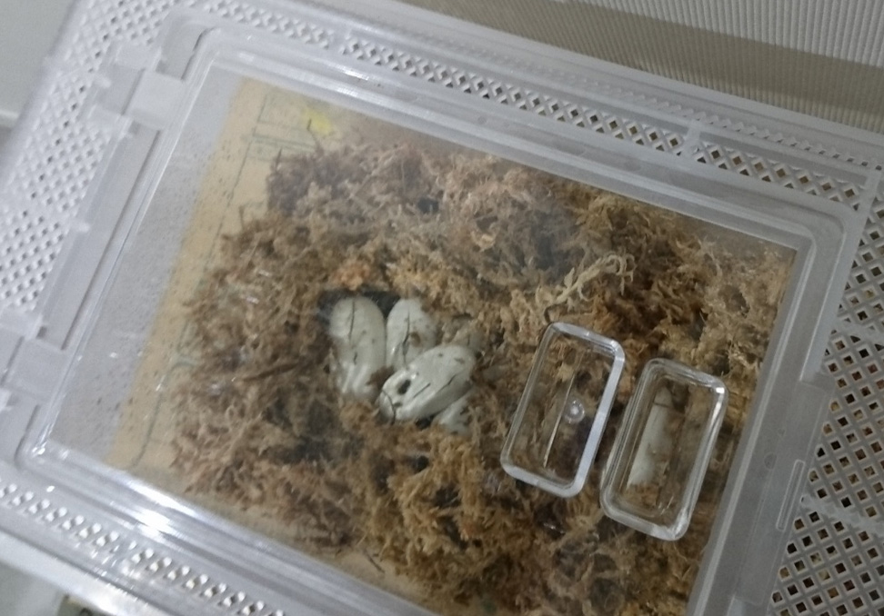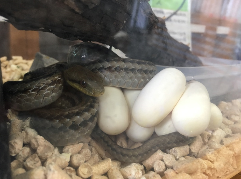 実は2ヵ月ほど前の7月18日に現場で保護したシマヘビさんがタマゴを生みまして・・・。