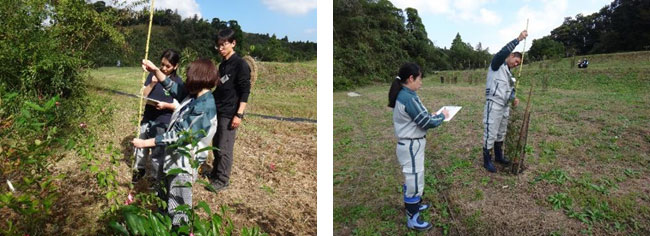 まずは、苑内に植樹する“苗木の計測”を体験しました。