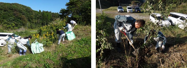 その後、セイタカアワダチソウ(外来種)の駆除を行い、駆除した位置に苗木を植樹しました。