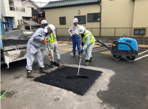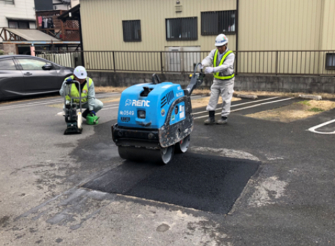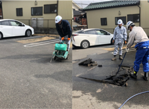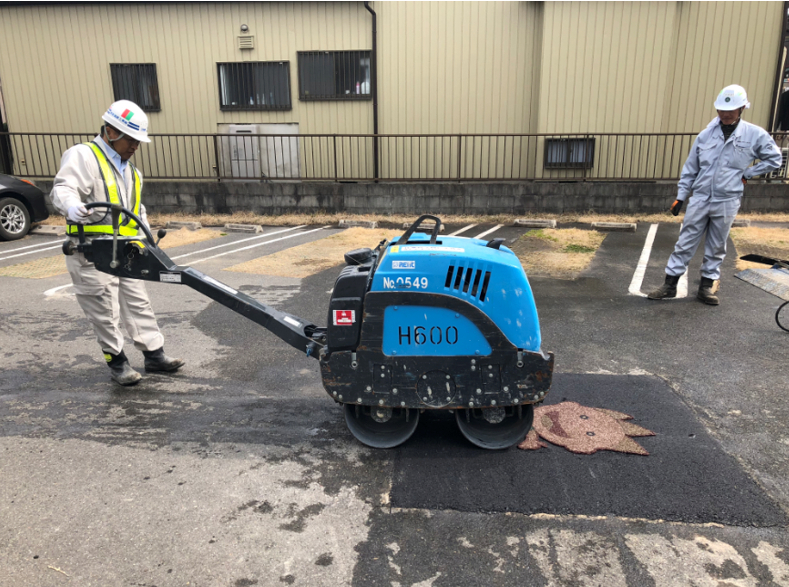 実際の工事で施工する前に、弊社の駐車場でどんな仕上がり具合になるかを試してみました。