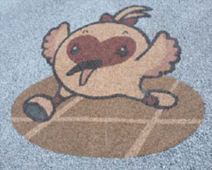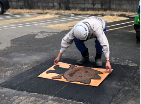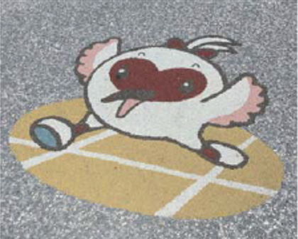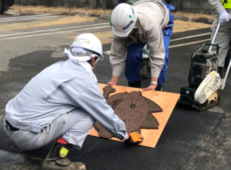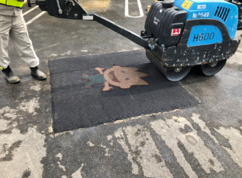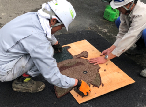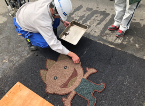 イラストが加熱アスファルト舗装面に埋め込まれました。