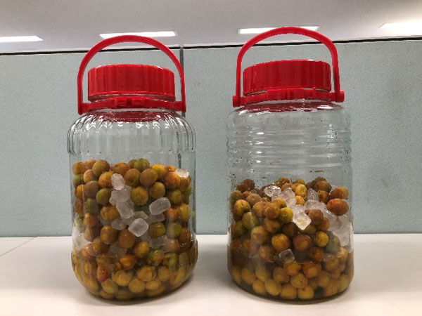 梅酒にするには、もう少し早い段階でリキュールに漬けなければならないのですが、