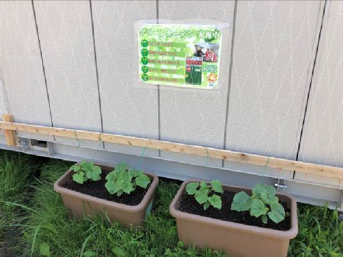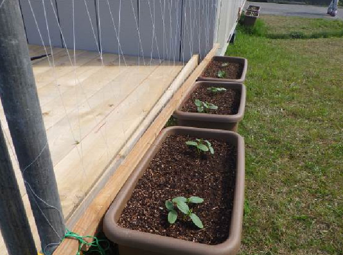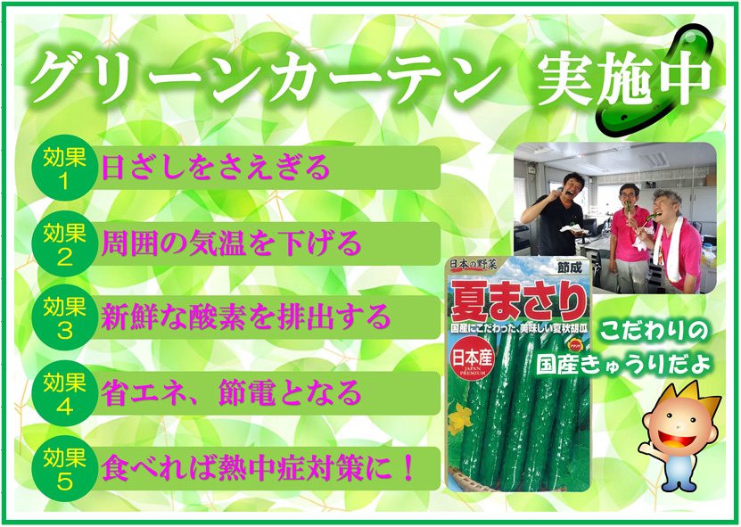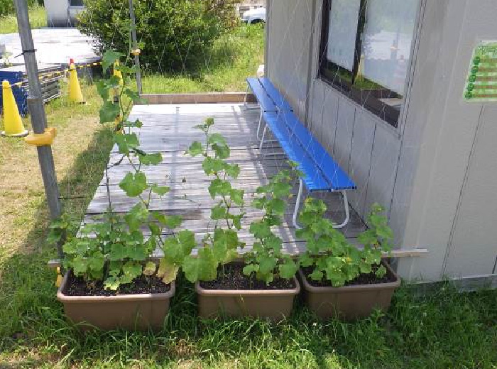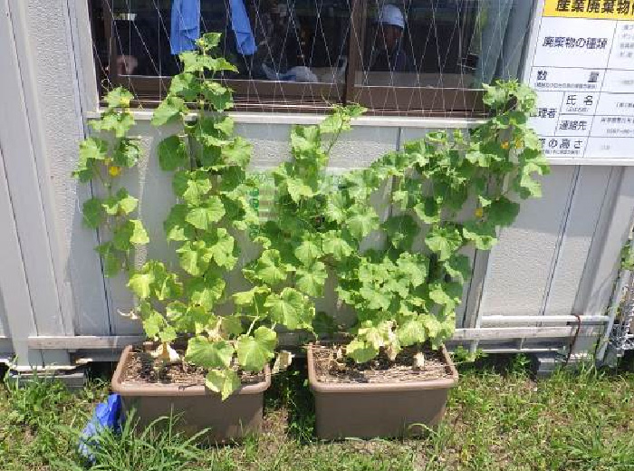 来るべき夏に向けて、工事事務所でグリーンカーテンを実施しました。