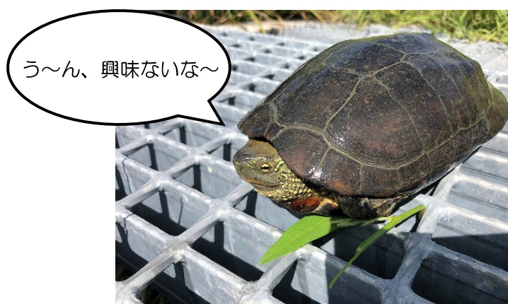 このクサガメ、昔は在来種とされていましたが、近年では研究により外来種とされてしまいました。