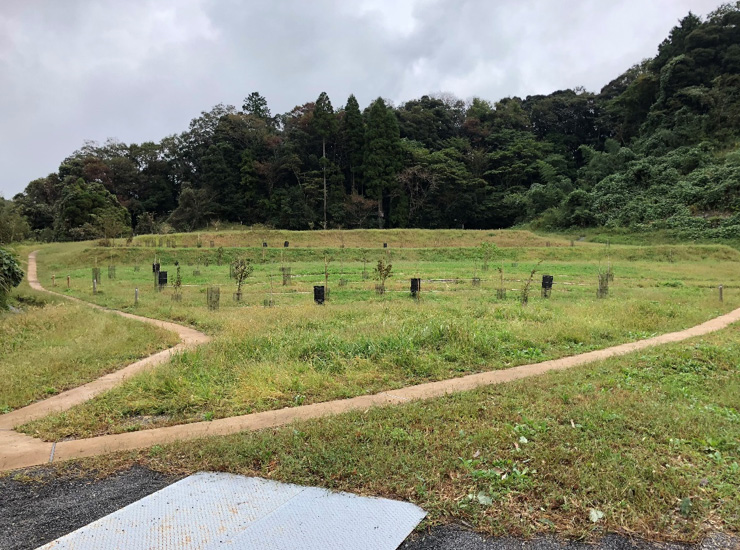この場所は、開発によって失われた自然を樹木葬という形で地域の自生種を植樹し