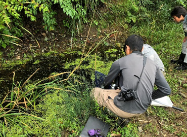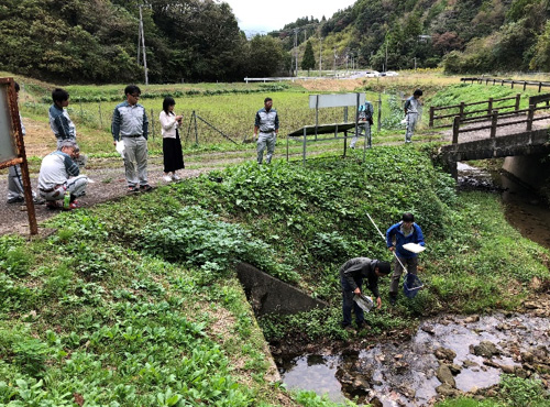 生態系配慮型水田では、自然に配慮した水路を見学し、生き物の調査も実施。