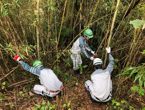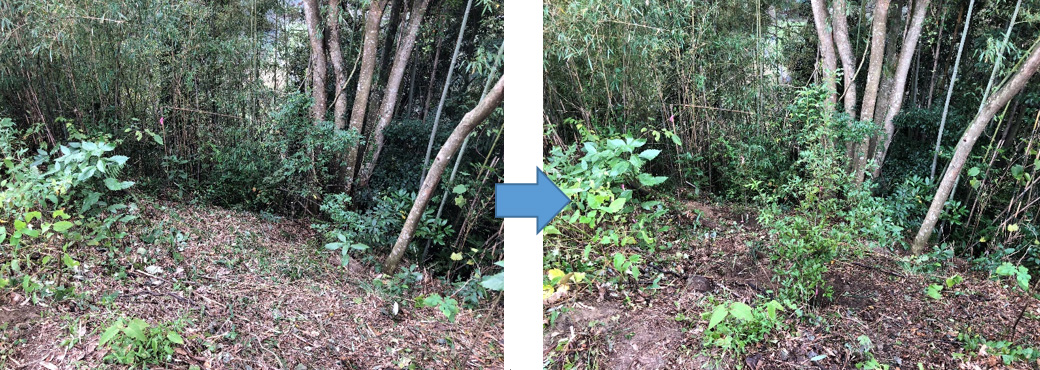今回は、自然を教材として勉強すると共に、侵略する竹林の伐採や植樹、苗木作りや