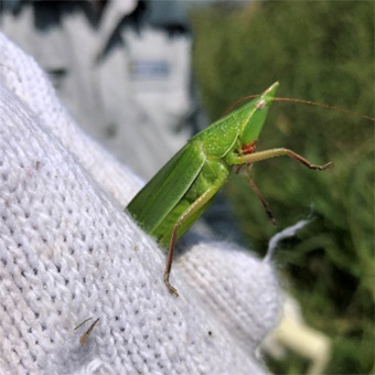 イネ科の植物が多いと、それを食べるバッタが増えます。