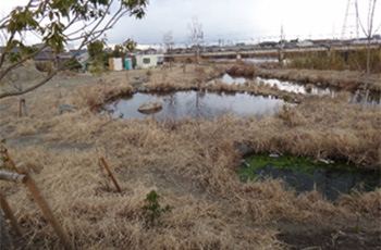 ビオトープはすっかり冬、写真からも寒さが伝わります。