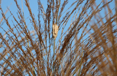 そしてヨシ原をよく見てみるとカマキリの卵を発見。