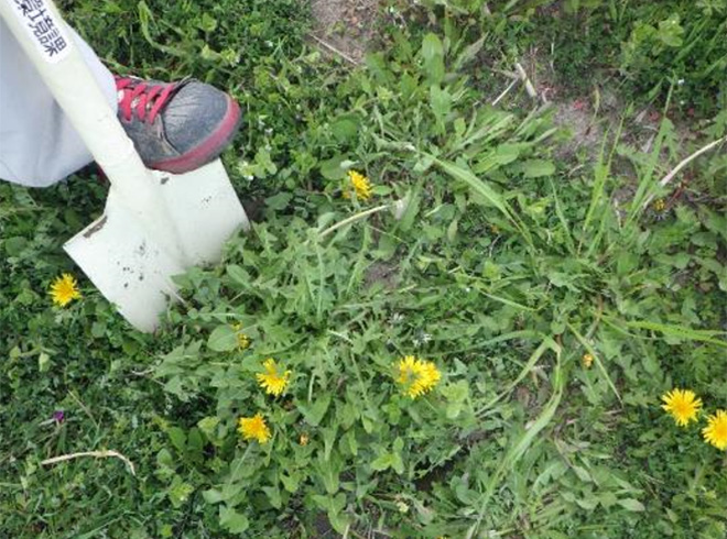 現場へ行くと、たくさんのタンポポが咲いていました。