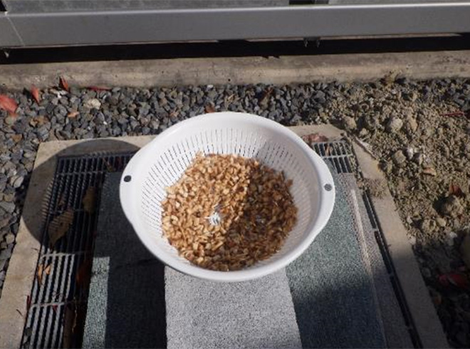 これを5mm程度に刻み、天日干しで乾燥させます。乾燥には1週間ほど・・・って長いし。