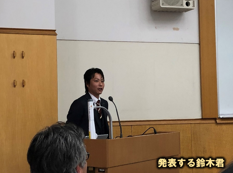 と題しまして、弊社の鈴木君が企業の事例として発表いたしました。