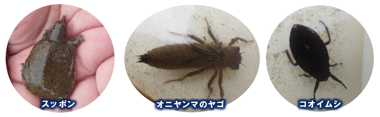 赤ちゃんスッポンも隠れていましたょ。オニヤンマのヤゴは、とても大きかったです!!