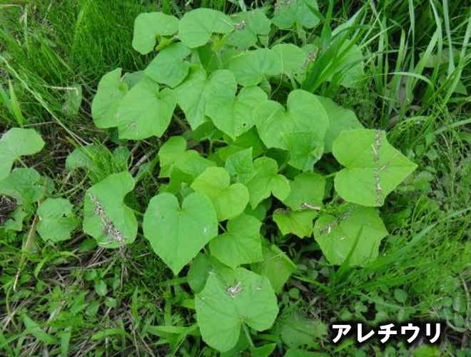 「アレチウリ」は、五角形の葉っぱが特徴のウリ科の一年生ツル性植物です。