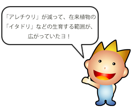 完全駆除には至っていませんが、繁茂範囲は確実に縮小しており駆除の効果が表れていています。