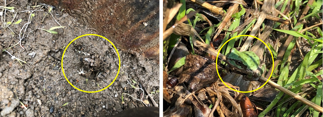 ヌマガエルとアマガエルもちゃんといますよ。見事な保護色ですね。
