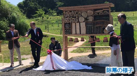 その後、「大きな昆虫の家」のお披露目です。白幕で隠されていた、“お家”の全貌が明らかとなりました。