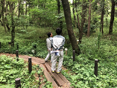 現場周辺の「こんぶくろ池自然博物公園」には、オオタカなどの猛禽類が頂点となる、豊かな生態系が形成されている事を学べました。