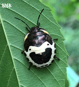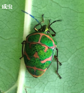 葉っぱの裏には、カメムシの仲間で最も美しいと称される、アカスジキンカメムシを発見!!