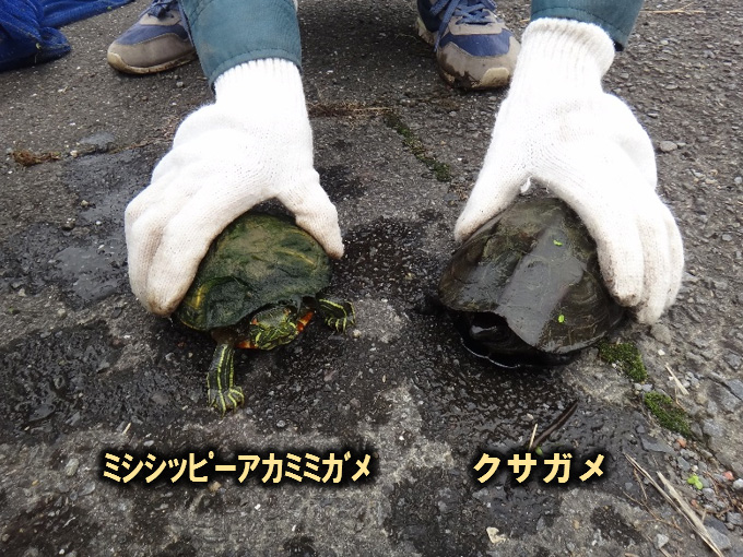 カダヤシは、特定外来生物なので、陸揚げして駆除。
