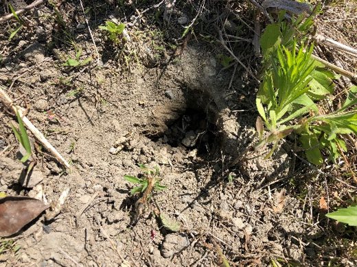 さてビオトープを歩いていると、バレーボールほどの穴を発見。